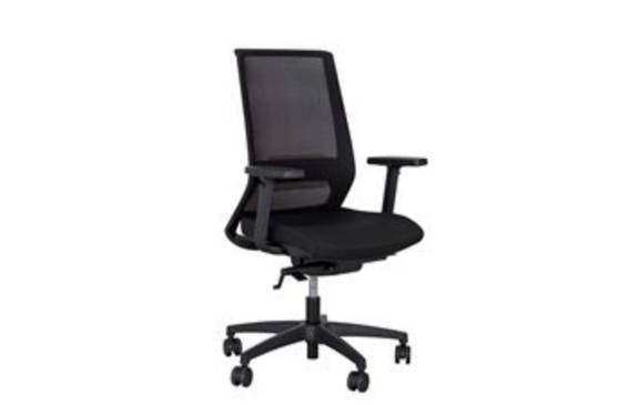 Black mesh backrest, lumbar support, height adjustable.
